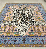 The intricate leopard design on the rug showcases a harmonious blend of traditional craftsmanship and contemporary style. The skilled artisans at Rida Handloom have poured their expertise into every detail, creating a masterpiece that seamlessly fuses classic and modern elements.